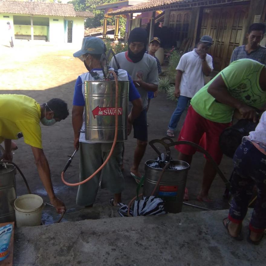 Para stakholder dan pemuda di Desa Podosoko melakukan penyemprotan disinfektan di seluruh rumah, tempat ibadah, makam dan tempat umum lainnya yang ada di Desa Podosoko. Kegiatan ini dilakukan serentak pada hari minggu <29>